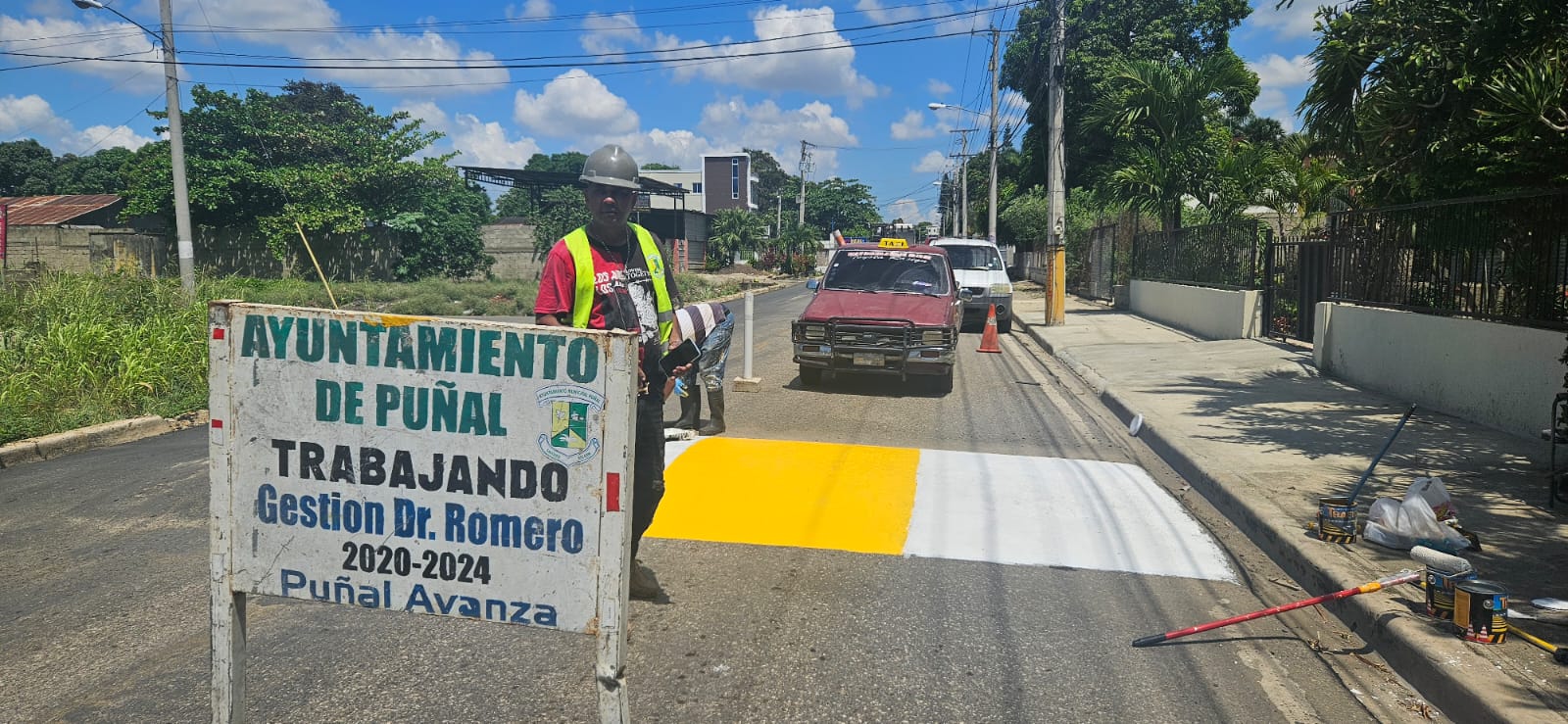 Bajo el mandato del alcalde del Ayuntamiento del Municipio de Puñal, el Dr. Enrique Romero, el departamento de ornato está llevando a cabo un operativo para pintar los policías acostados en la carretera principal Francisco del Rosario Sánchez.