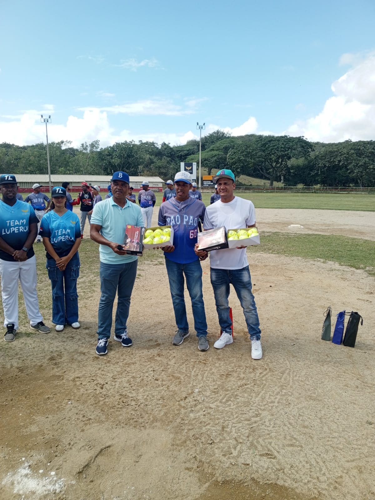 La entrega benefició a los equipos Los Primos de Matanza Adentro, Los Pepe Pao Pao y Transporte Luperón, quienes participan activamente en los encuentros deportivos que se desarrollan en esta instalación.
